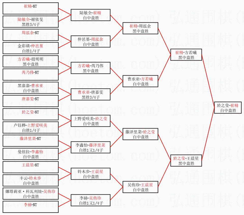 | 1.崔精获得冠军,於之莹获得亚军。决赛比分:崔精2:1於之莹。棋局: | ||