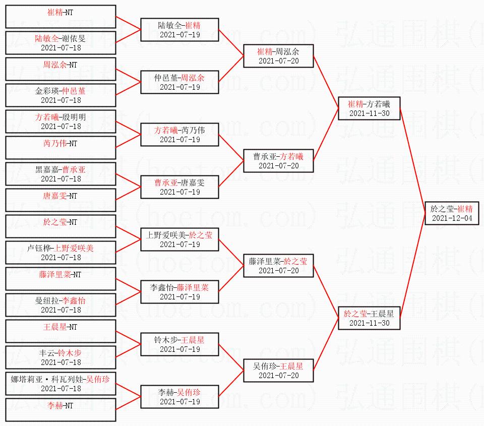 1.崔精获得冠军,於之莹获得亚军。决赛比分:崔精2:1於之莹。棋局:
