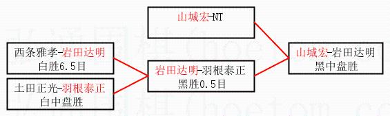 3.下半区半决赛岩田达明获胜,比分:岩田达明1:0羽根泰正。棋局: