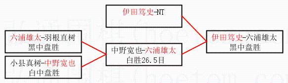 3.下半区半决赛六浦雄太获胜,比分:六浦雄太1:0中野宽也。棋局: