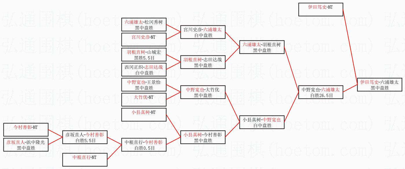 1.伊田笃史获得冠军,六浦雄太获得亚军。决赛比分:伊田笃史1:0六浦雄太。棋局: