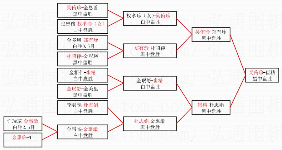 | 1.吴侑珍获得冠军,崔精获得亚军。决赛比分:吴侑珍2:0崔精。棋局: | ||
