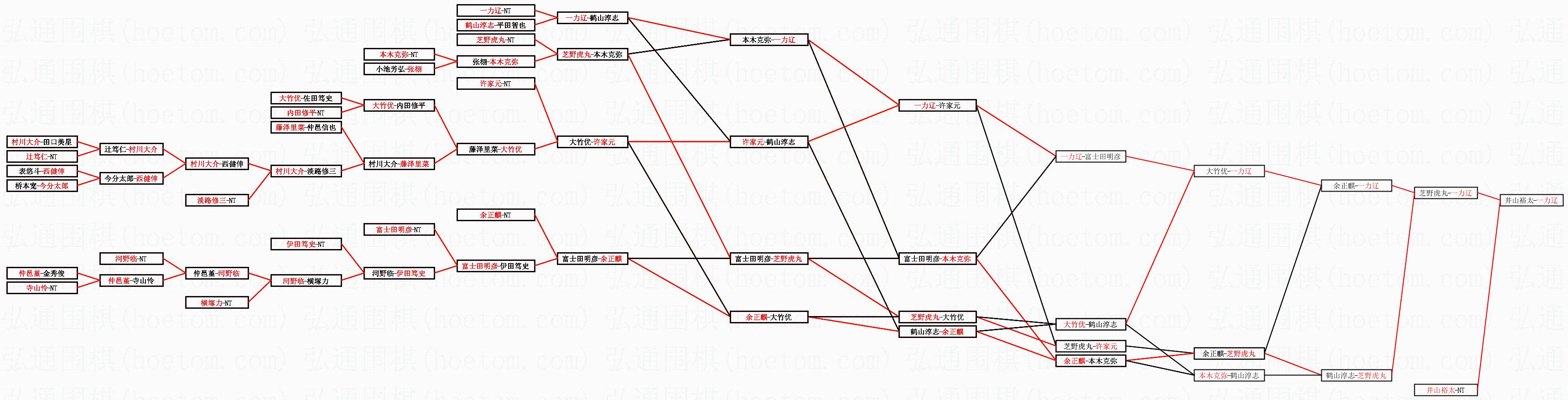 | 1.一力辽获得冠军,井山裕太获得亚军。决赛比分:一力辽4:3井山裕太。棋局: | ||