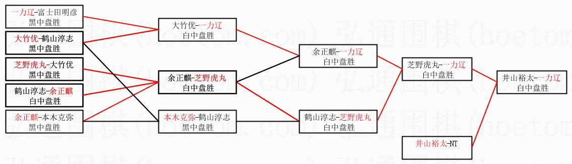 1.一力辽获得冠军,井山裕太获得亚军。决赛比分:一力辽4:3井山裕太。棋局: