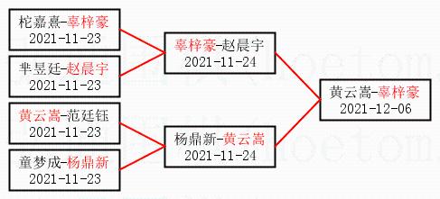 1.辜梓豪获得冠军,黄云嵩获得亚军。决赛比分:辜梓豪1:0黄云嵩。棋局: