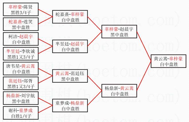 1.辜梓豪获得冠军,黄云嵩获得亚军。决赛比分:辜梓豪1:0黄云嵩。棋局: