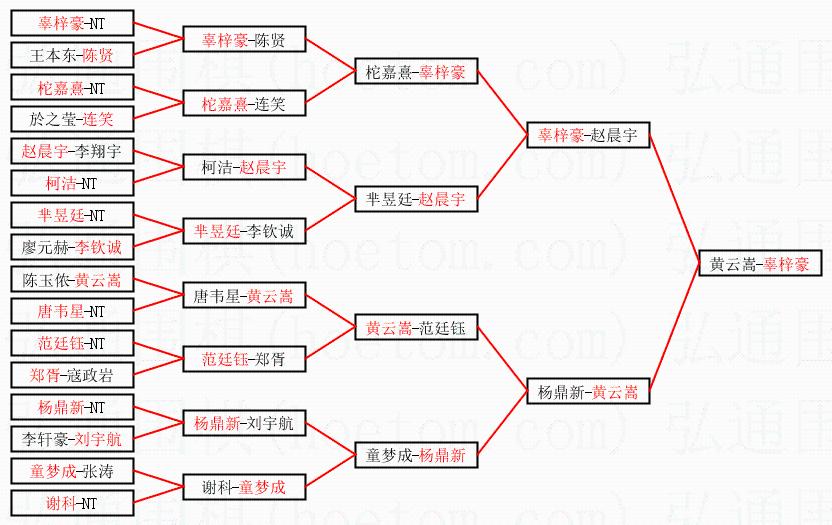 1.辜梓豪获得冠军,黄云嵩获得亚军。决赛比分:辜梓豪1:0黄云嵩。棋局: