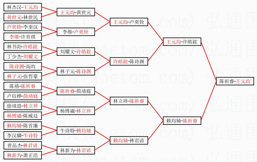 | 1.王元均获得冠军,陈祈睿获得亚军。决赛比分:王元均2:1陈祈睿。棋局: | ||