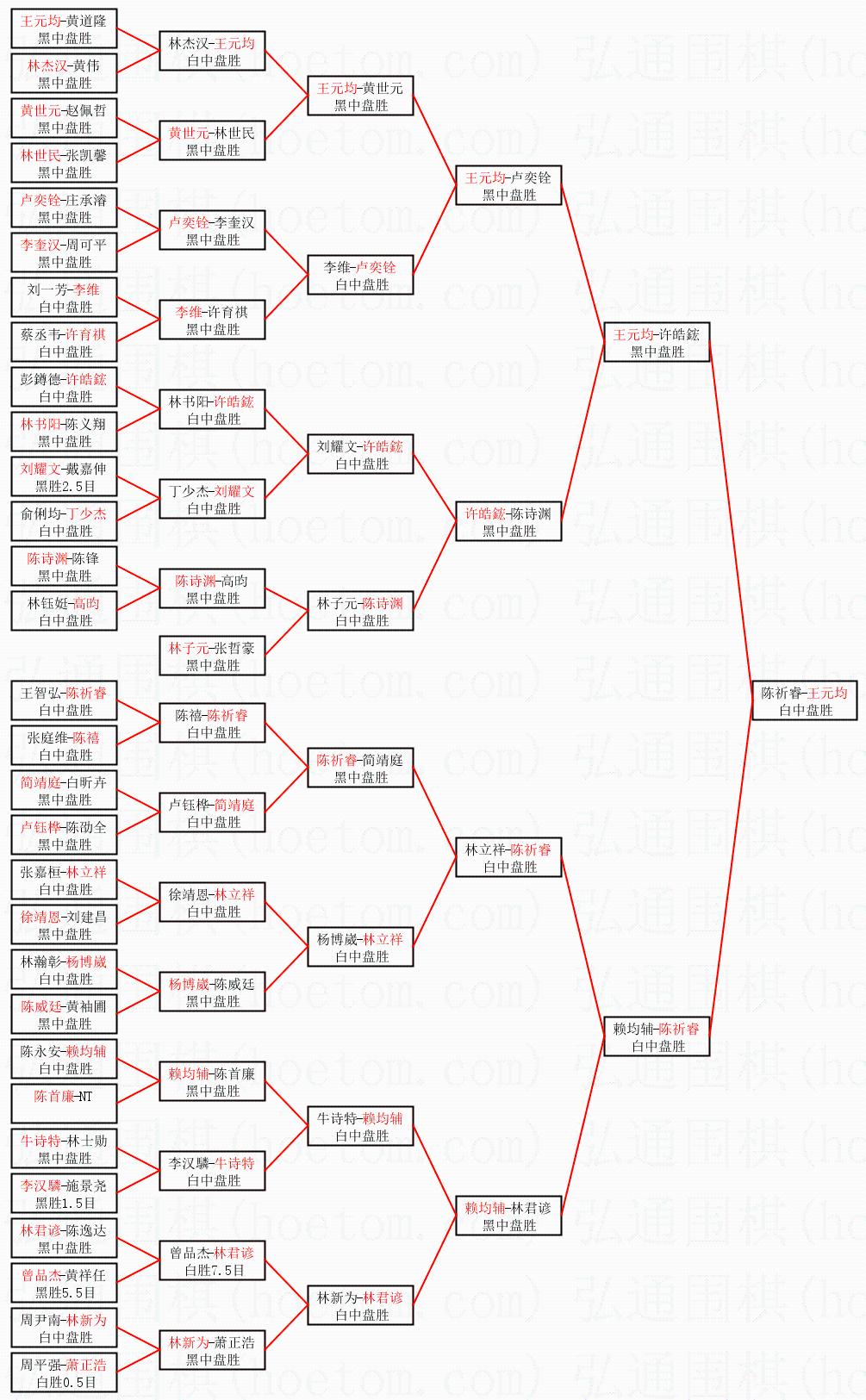 | 1.王元均获得冠军,陈祈睿获得亚军。决赛比分:王元均2:1陈祈睿。棋局: | ||