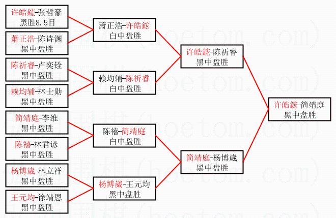1.许皓鋐获得冠军,简靖庭获得亚军。决赛比分:许皓鋐2:0简靖庭。棋局: