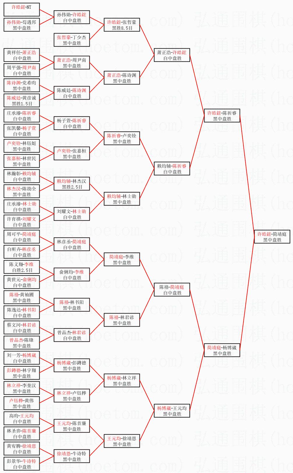 1.许皓鋐获得冠军,简靖庭获得亚军。决赛比分:许皓鋐2:0简靖庭。棋局: