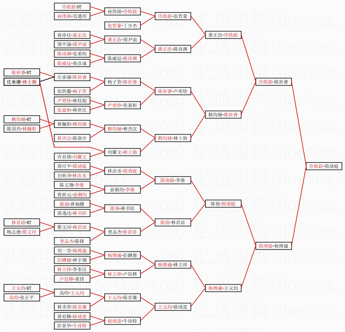 1.许皓鋐获得冠军,简靖庭获得亚军。决赛比分:许皓鋐2:0简靖庭。棋局: