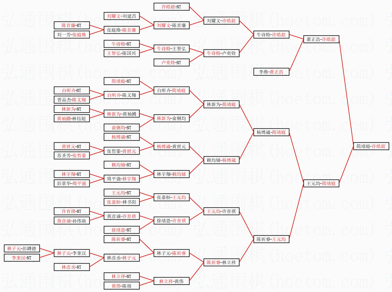 | 1.许皓鋐获得冠军,简靖庭获得亚军。决赛比分:许皓鋐2:0简靖庭。棋局: | ||