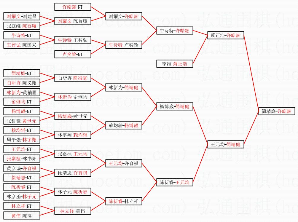 | 1.许皓鋐获得冠军,简靖庭获得亚军。决赛比分:许皓鋐2:0简靖庭。棋局: | ||