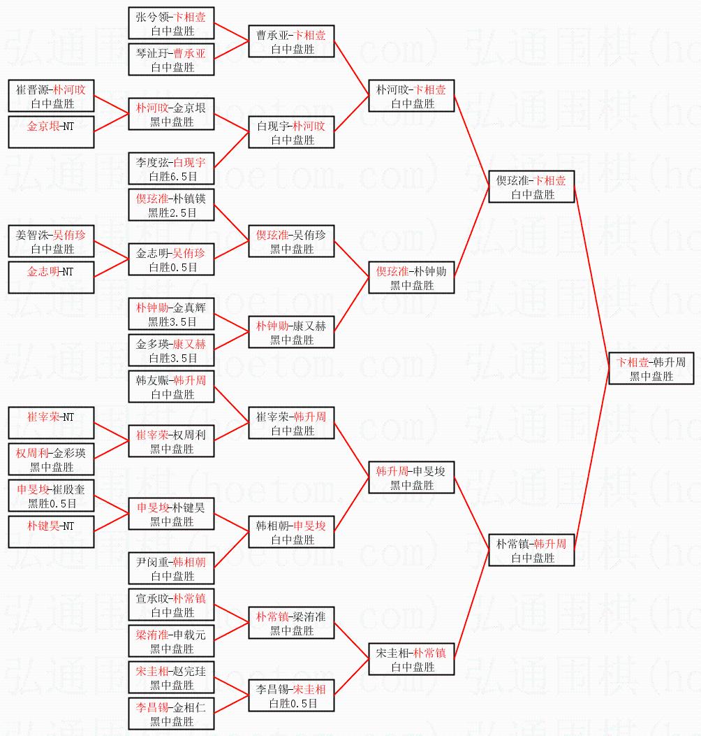 1.卞相壹获得冠军,韩升周获得亚军。决赛比分:卞相壹2:1韩升周。棋局: