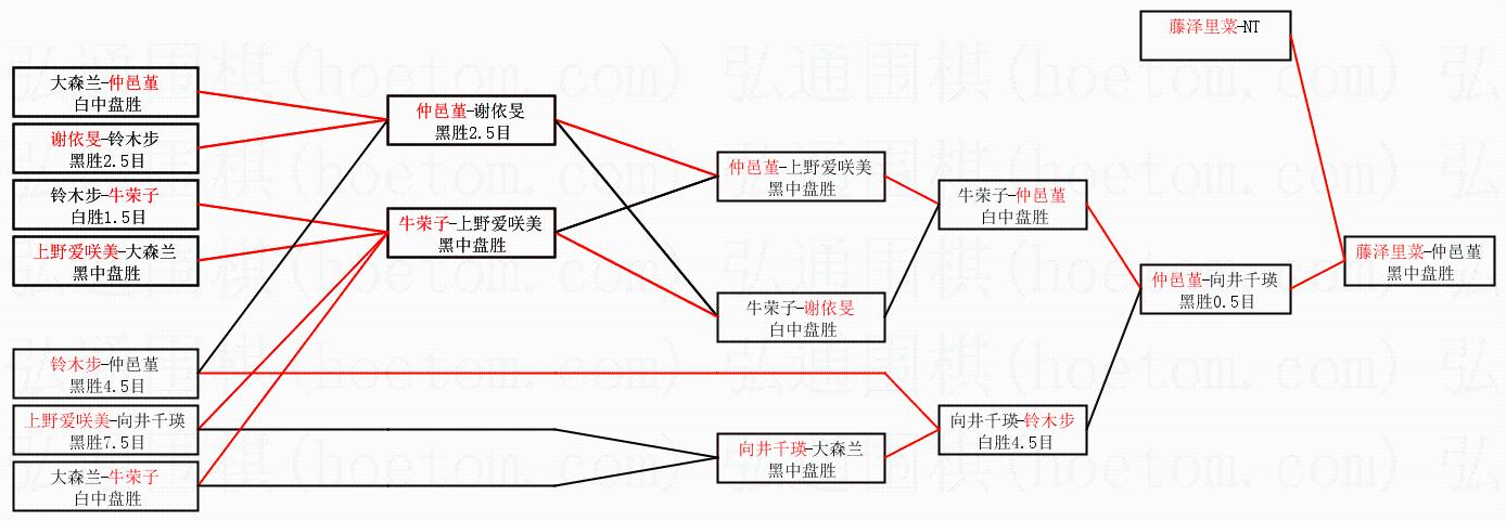 1.藤泽里菜获得冠军,仲邑堇获得亚军。决赛比分:藤泽里菜2:0仲邑堇。棋局: