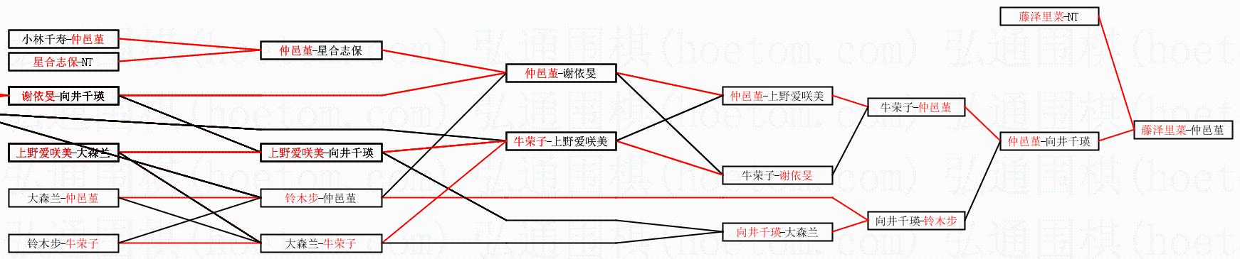 1.藤泽里菜获得冠军,仲邑堇获得亚军。决赛比分:藤泽里菜2:0仲邑堇。棋局: