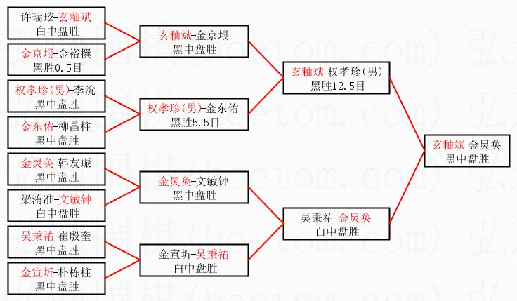 | 1.玄釉斌获得冠军,金炅奂获得亚军。决赛比分:玄釉斌2:1金炅奂。棋局: | ||