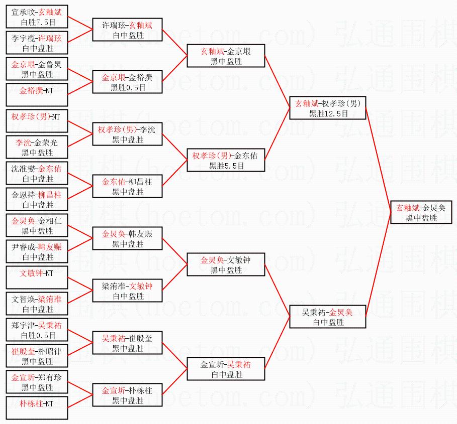 | 1.玄釉斌获得冠军,金炅奂获得亚军。决赛比分:玄釉斌2:1金炅奂。棋局: | ||