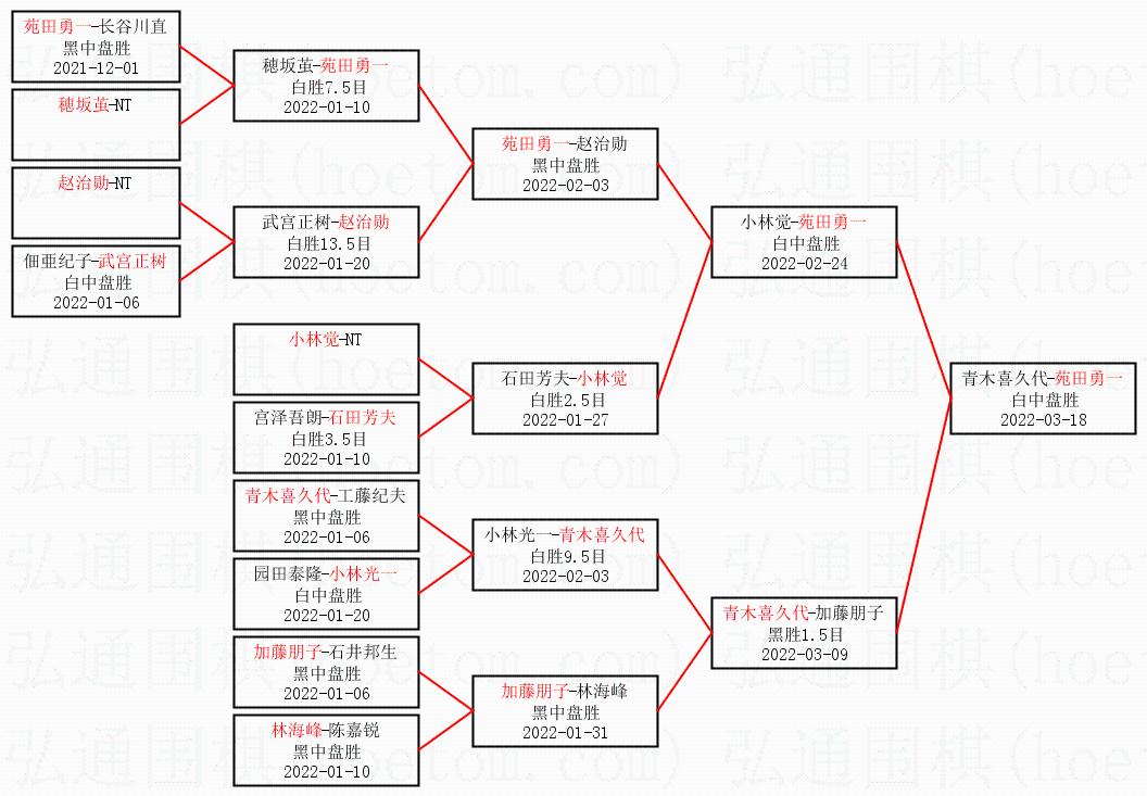 1.苑田勇一获得冠军,青木喜久代获得亚军。决赛比分:苑田勇一1:0青木喜久代。棋局: