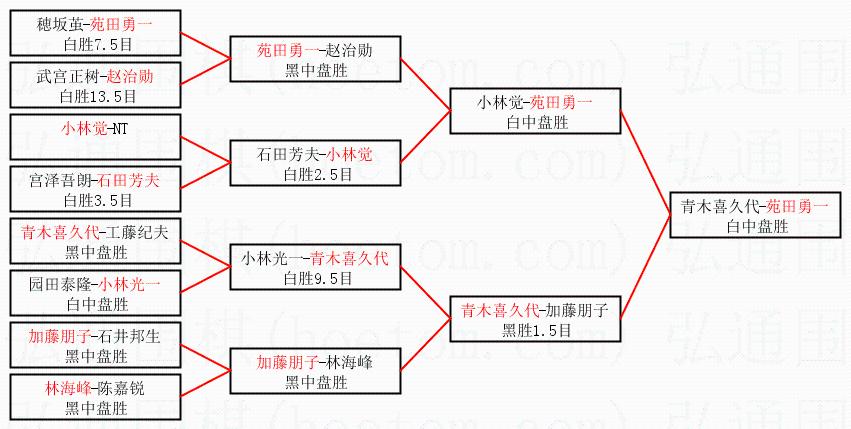 2.上半区半决赛苑田勇一获胜, 比分:苑田勇一 1:0 小林觉。棋局: