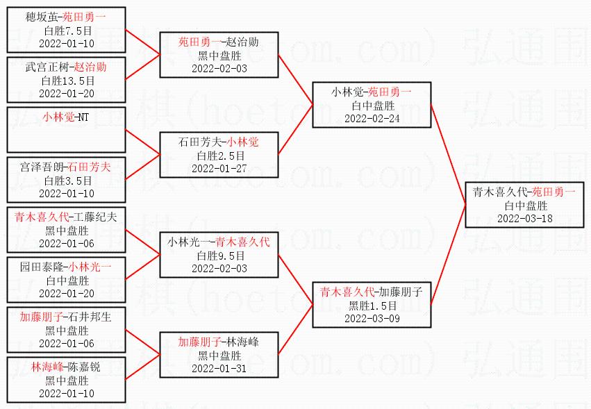 2.上半区半决赛苑田勇一获胜, 比分:苑田勇一 1:0 小林觉。棋局: