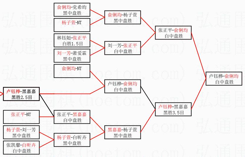 1.俞俐均获得冠军,卢钰桦获得亚军。决赛比分:俞俐均1:0卢钰桦。棋局: