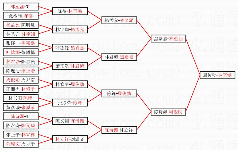 | 1.林至涵获得冠军,周俊勋获得亚军。决赛比分:林至涵2:0周俊勋。棋局: | ||