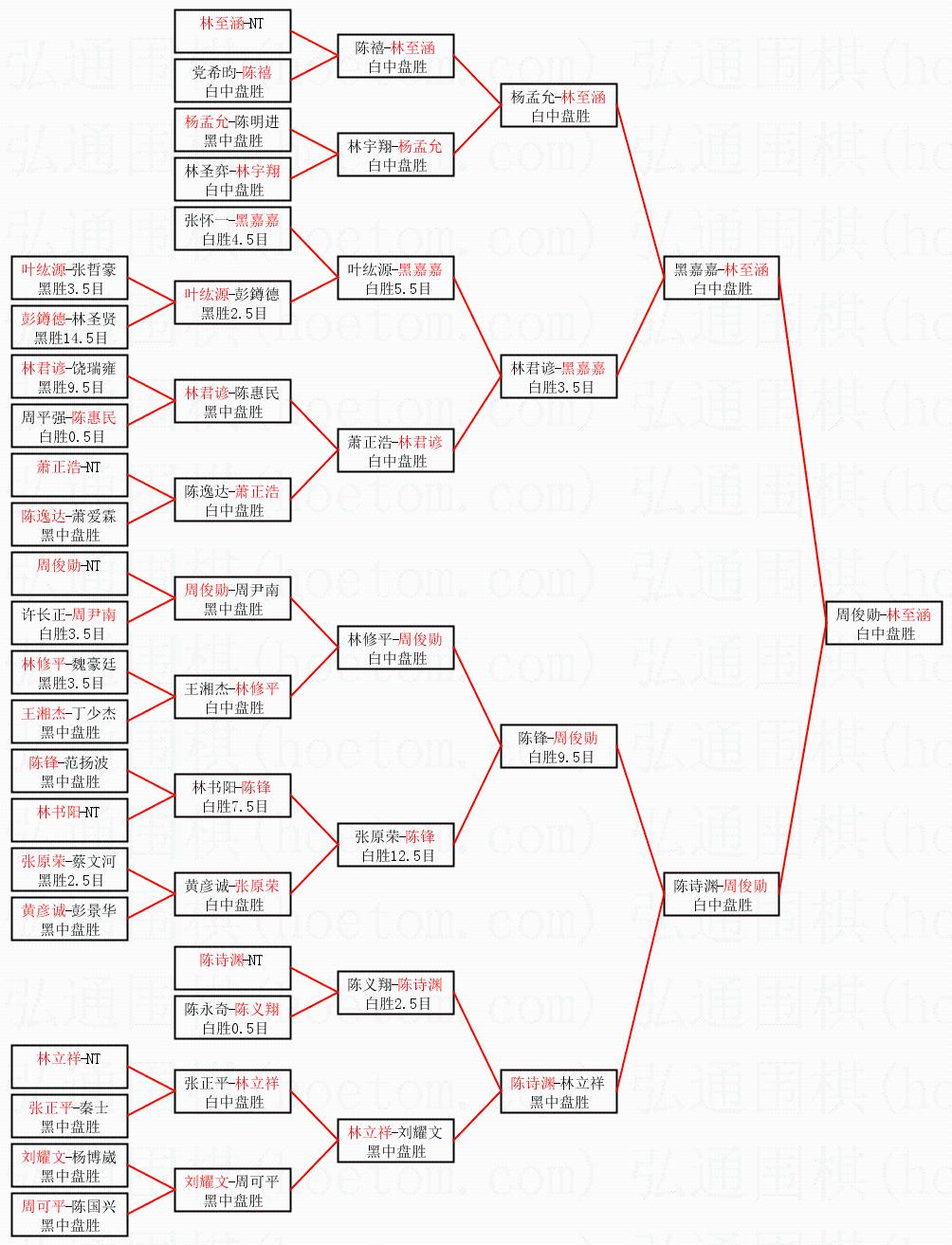 | 1.林至涵获得冠军,周俊勋获得亚军。决赛比分:林至涵2:0周俊勋。棋局: | ||