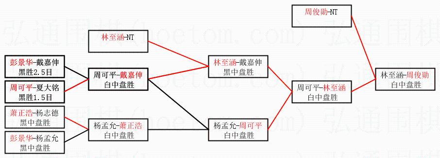 3.下半区半决赛林至涵获胜,比分:林至涵1:0周可平。棋局: