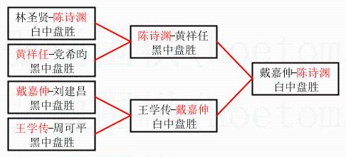 | 2.上半区半决赛陈诗渊获胜, 比分:陈诗渊 1:0 黄祥任。棋局: | ||