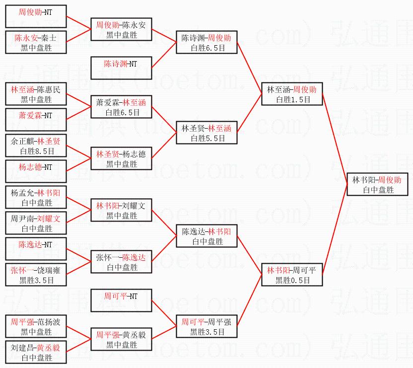 | 1.周俊勋获得冠军,林书阳获得亚军。决赛比分:周俊勋2:0林书阳。棋局: | ||