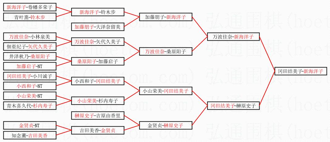 | 1.新海洋子获得冠军,冈田结美子获得亚军。决赛比分:新海洋子1:0冈田结美子。棋局: | ||