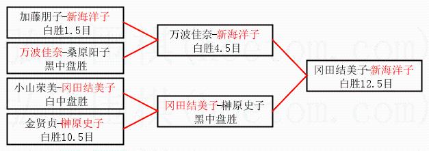 | 1.新海洋子获得冠军,冈田结美子获得亚军。决赛比分:新海洋子1:0冈田结美子。棋局: | ||