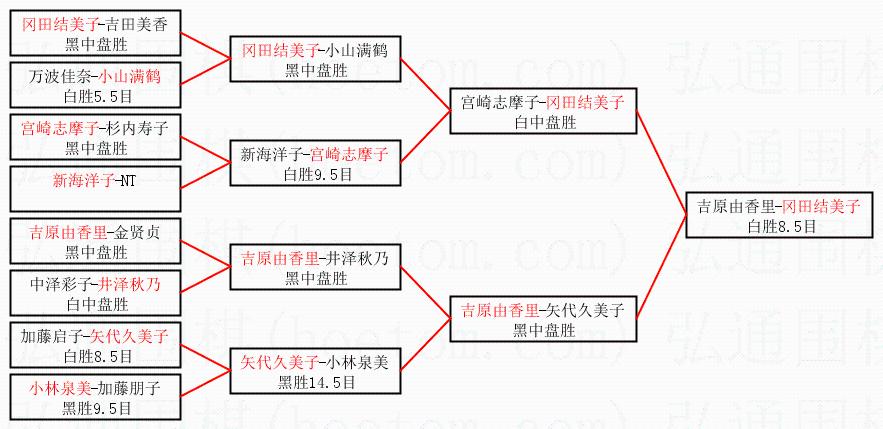 1.冈田结美子获得冠军,吉原由香里获得亚军。决赛比分:冈田结美子1:0吉原由香里。棋局: