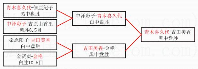 1.青木喜久代获得冠军,吉田美香获得亚军。决赛比分:青木喜久代1:0吉田美香。棋局: