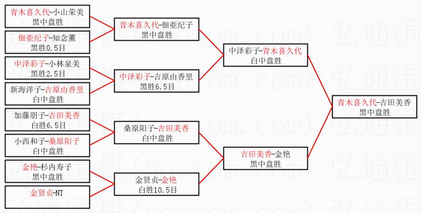 1.青木喜久代获得冠军,吉田美香获得亚军。决赛比分:青木喜久代1:0吉田美香。棋局: