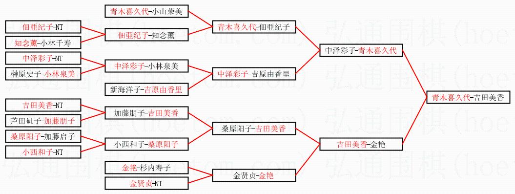 2.上半区半决赛青木喜久代获胜, 比分:青木喜久代 1:0 中泽彩子。棋局: