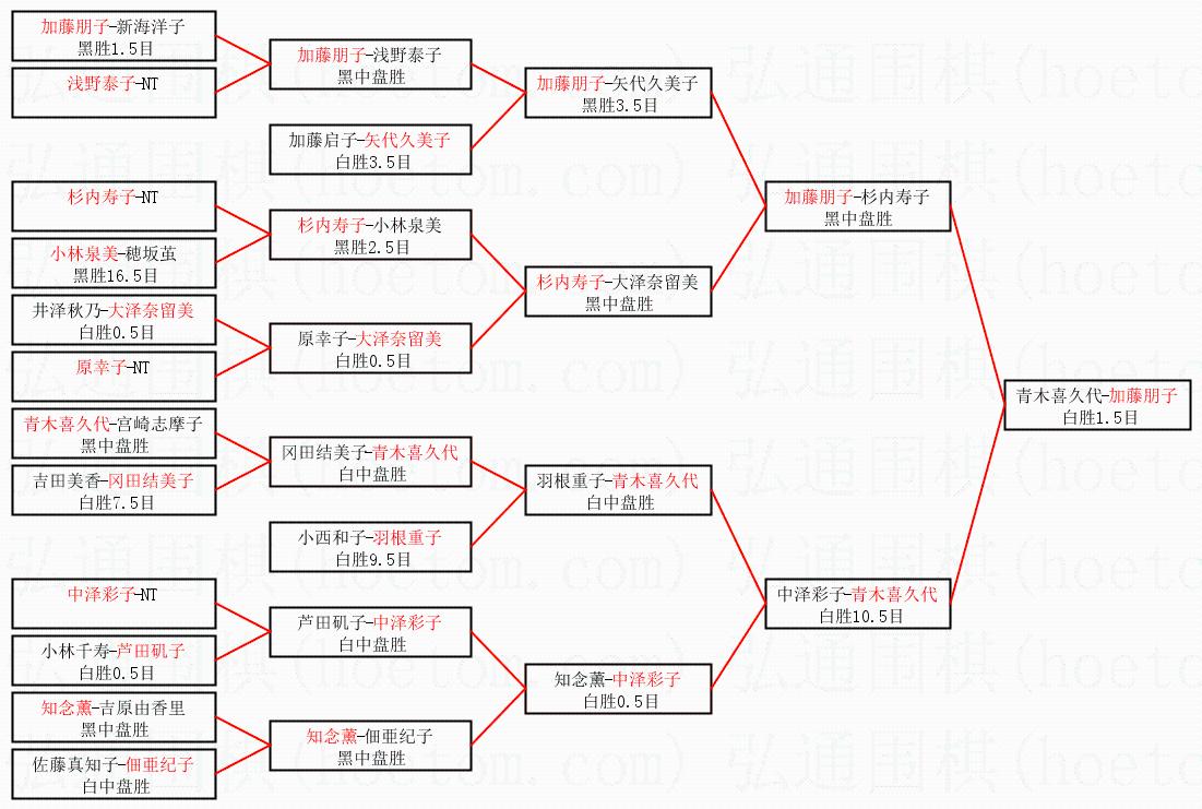 | 1.加藤朋子获得冠军,青木喜久代获得亚军。决赛比分:加藤朋子1:0青木喜久代。棋局: | ||