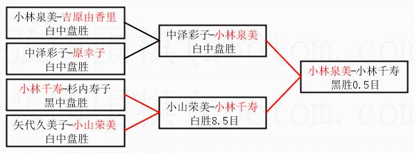 | 1.小林泉美获得冠军,小林千寿获得亚军。决赛比分:小林泉美2:0小林千寿。棋局: | ||