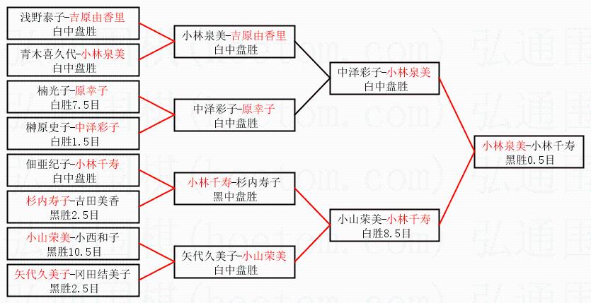 2.上半区半决赛小林泉美获胜, 比分:小林泉美 1:0 中泽彩子。棋局: