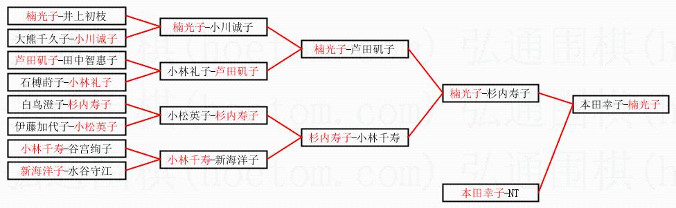 1.楠光子获得冠军,本田幸子获得亚军。决赛比分:楠光子2:1本田幸子。棋局: