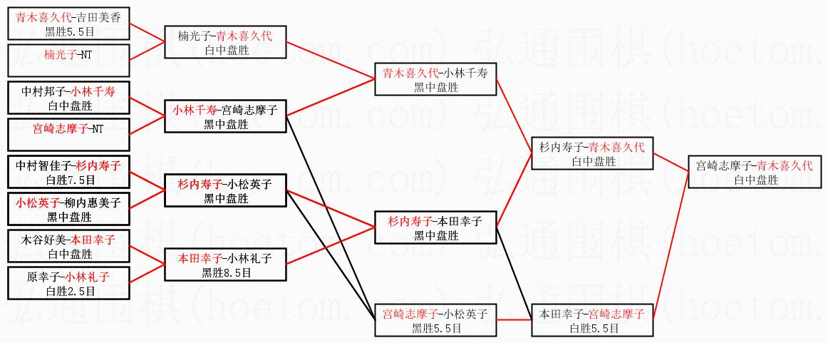 | 1.青木喜久代获得冠军,宫崎志摩子获得亚军。决赛比分:青木喜久代1:0宫崎志摩子。棋局: | ||
