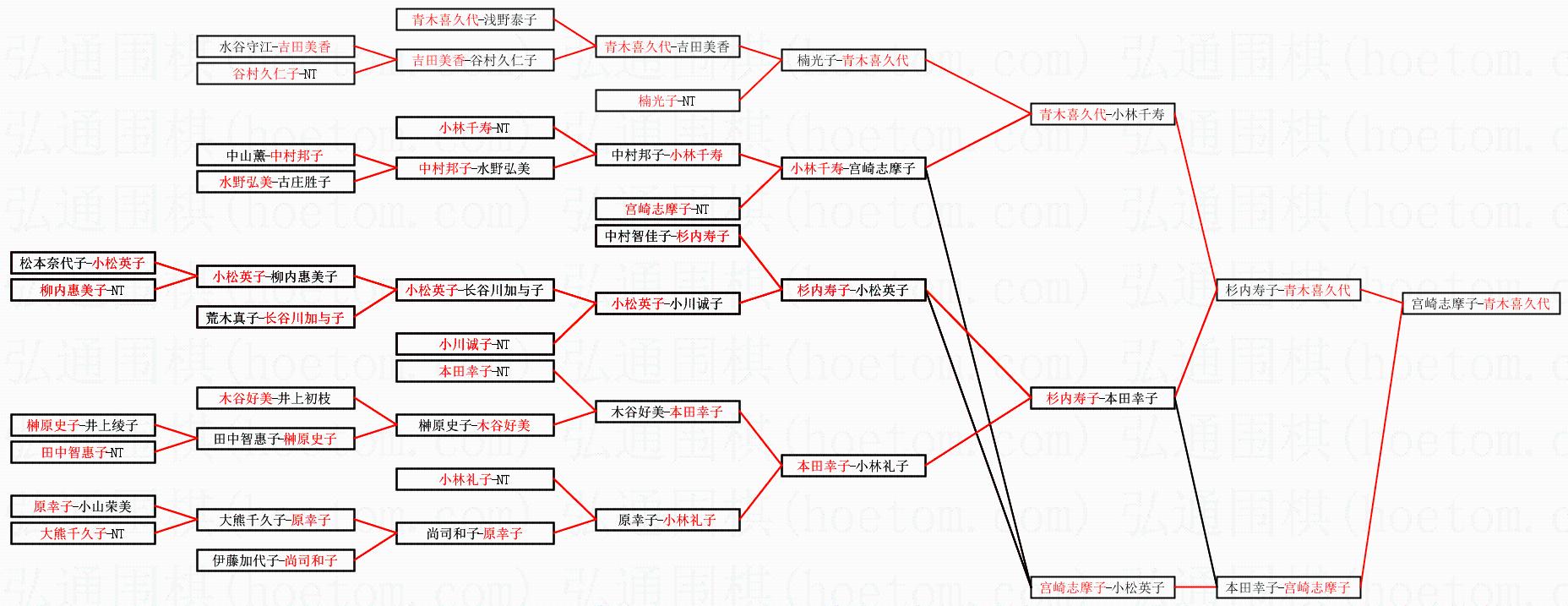 | 1.青木喜久代获得冠军,宫崎志摩子获得亚军。决赛比分:青木喜久代1:0宫崎志摩子。棋局: | ||