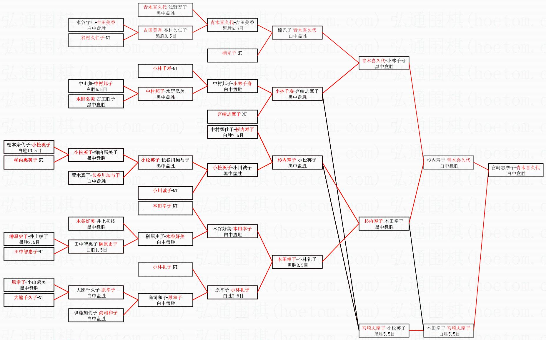 2.上半区半决赛青木喜久代获胜, 比分:青木喜久代 1:0 杉内寿子。棋局: