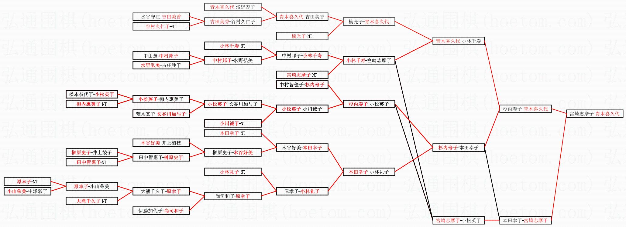 | 1.青木喜久代获得冠军,宫崎志摩子获得亚军。决赛比分:青木喜久代1:0宫崎志摩子。棋局: | ||
