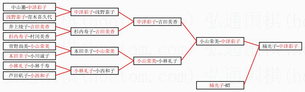 1.中泽彩子获得冠军,楠光子获得亚军。决赛比分:中泽彩子2:1楠光子。棋局: