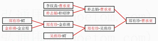 1.曹承亚获得冠军,郑有珍获得亚军。决赛比分:曹承亚1:0郑有珍。棋局: