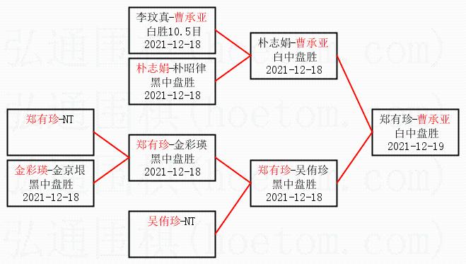 1.曹承亚获得冠军,郑有珍获得亚军。决赛比分:曹承亚1:0郑有珍。棋局: