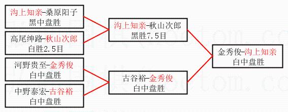 2.上半区半决赛沟上知亲获胜, 比分:沟上知亲 1:0 秋山次郎。棋局: